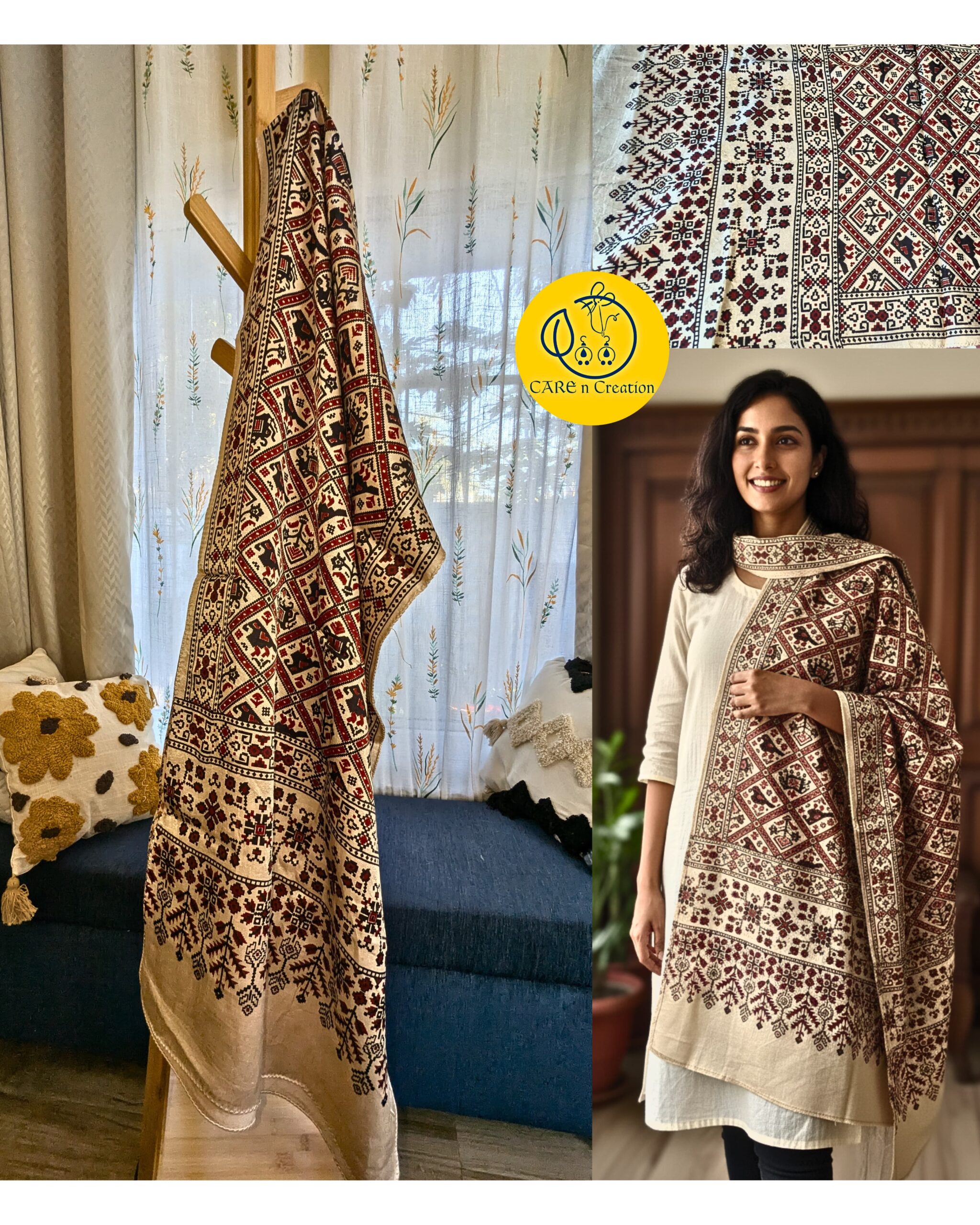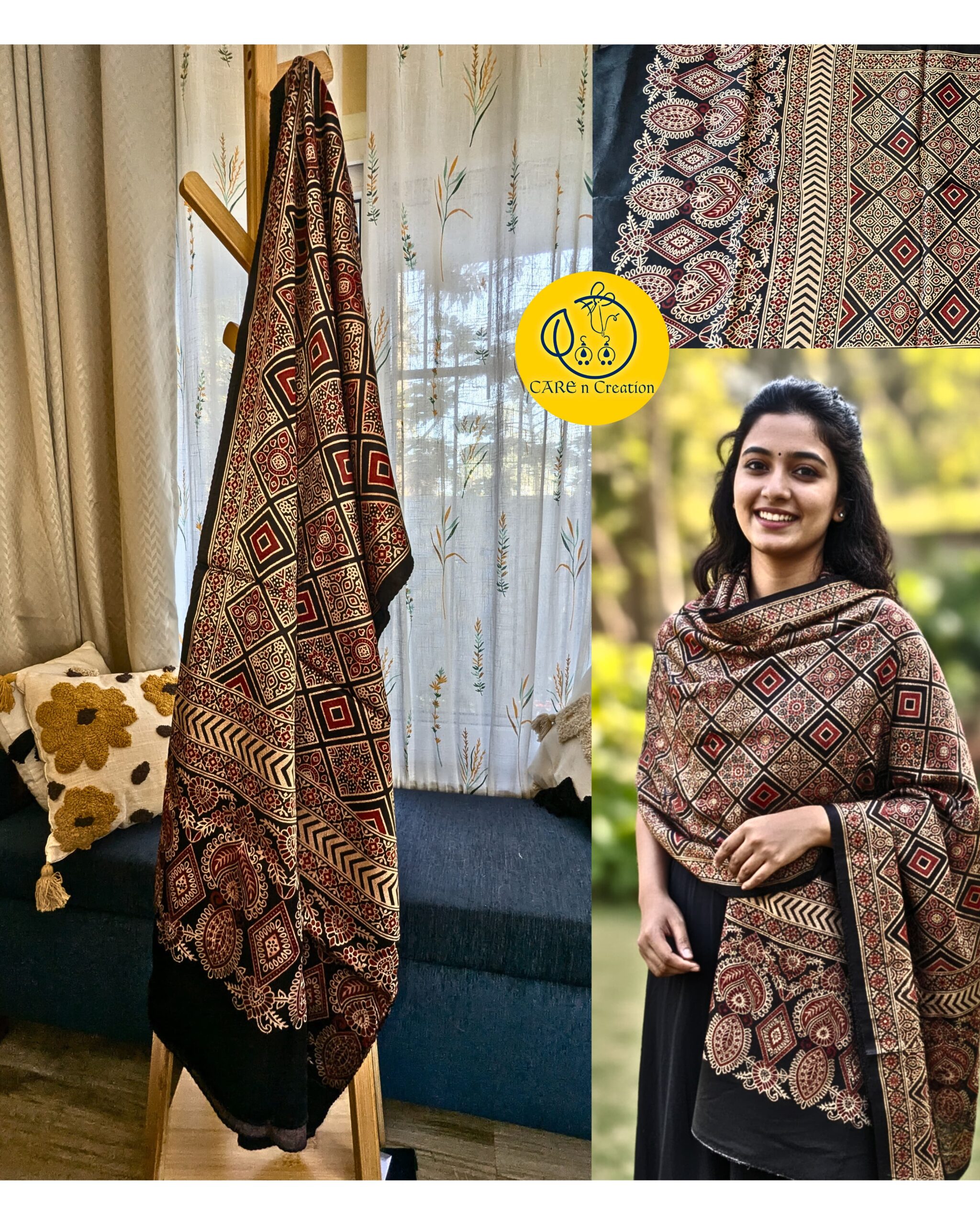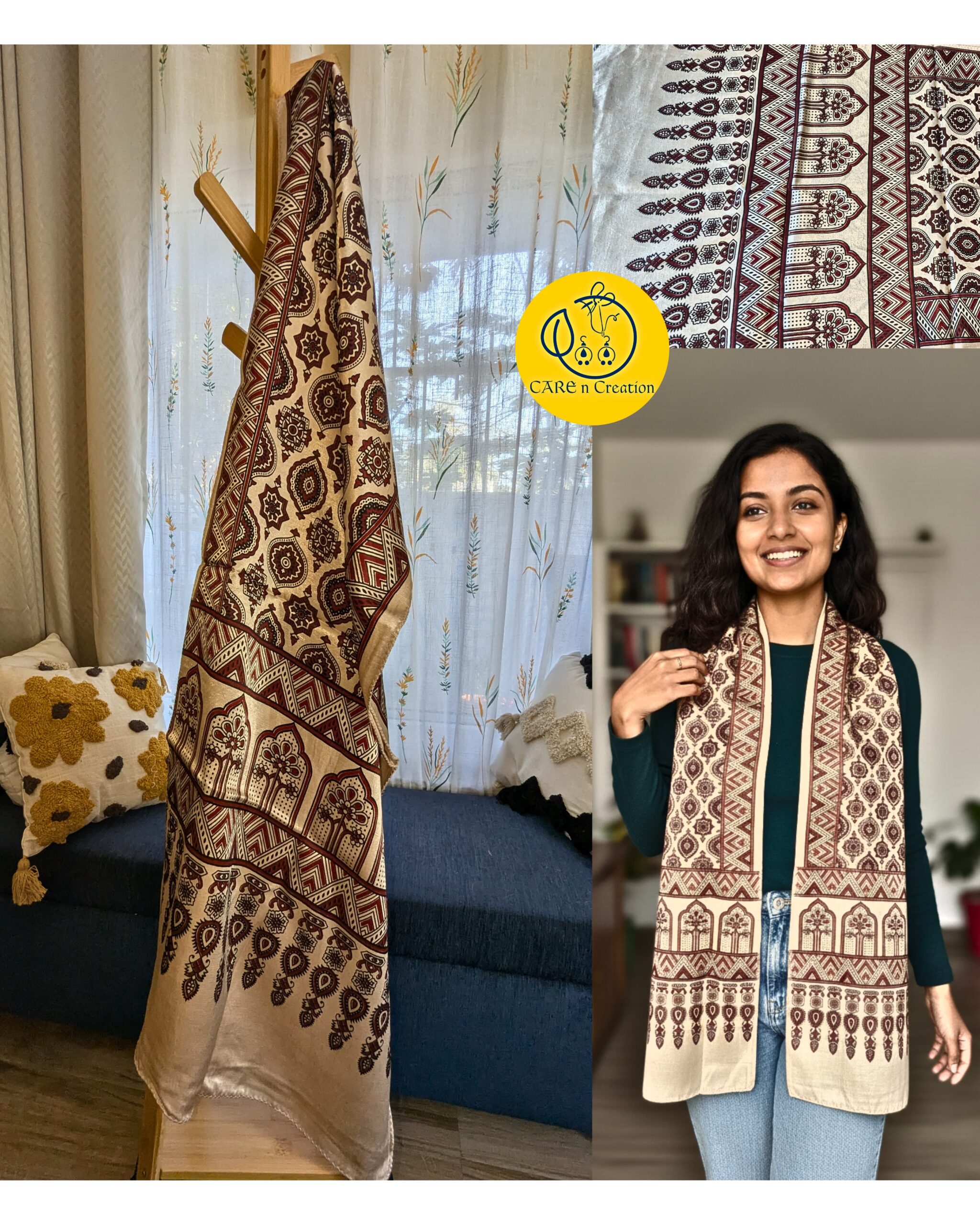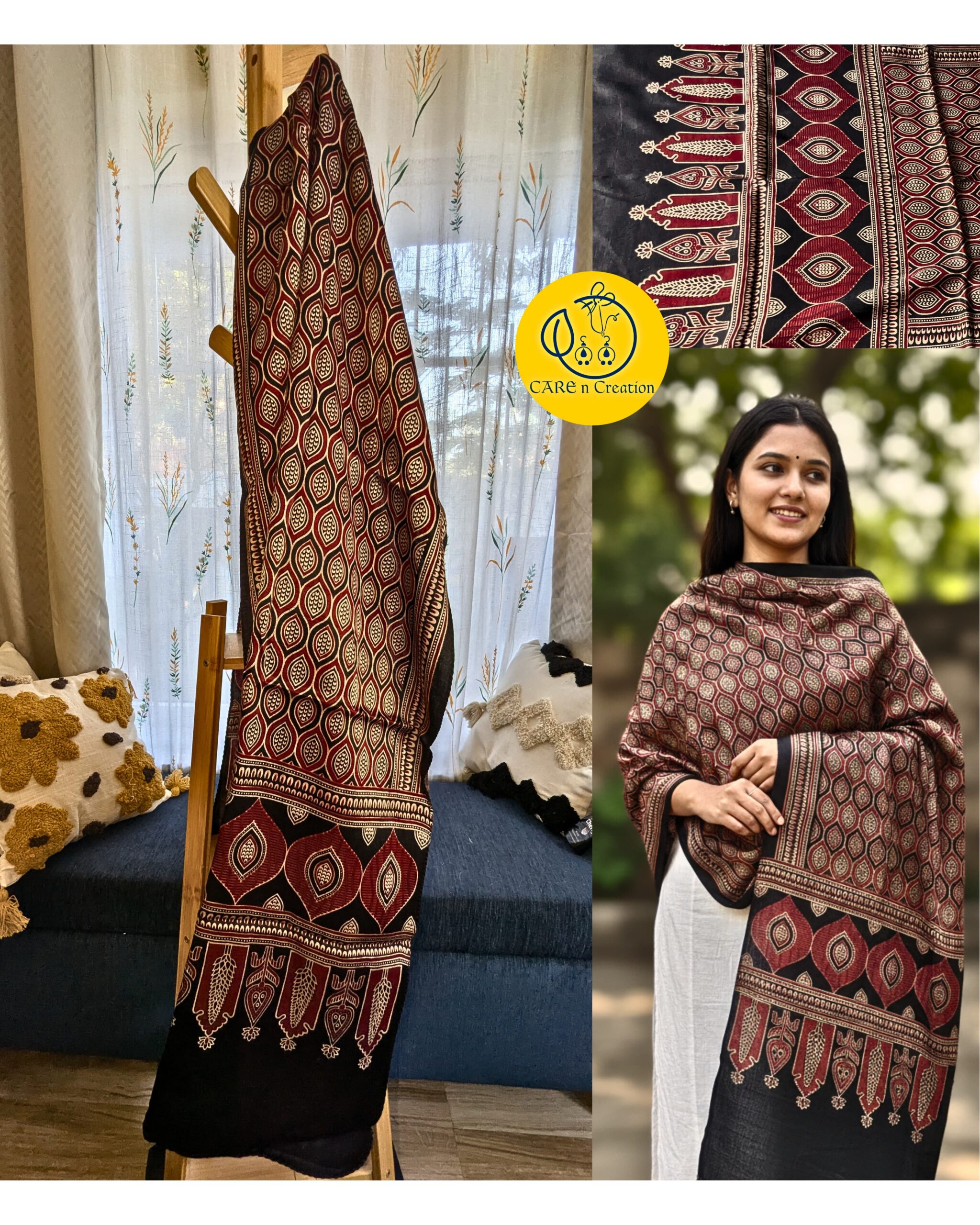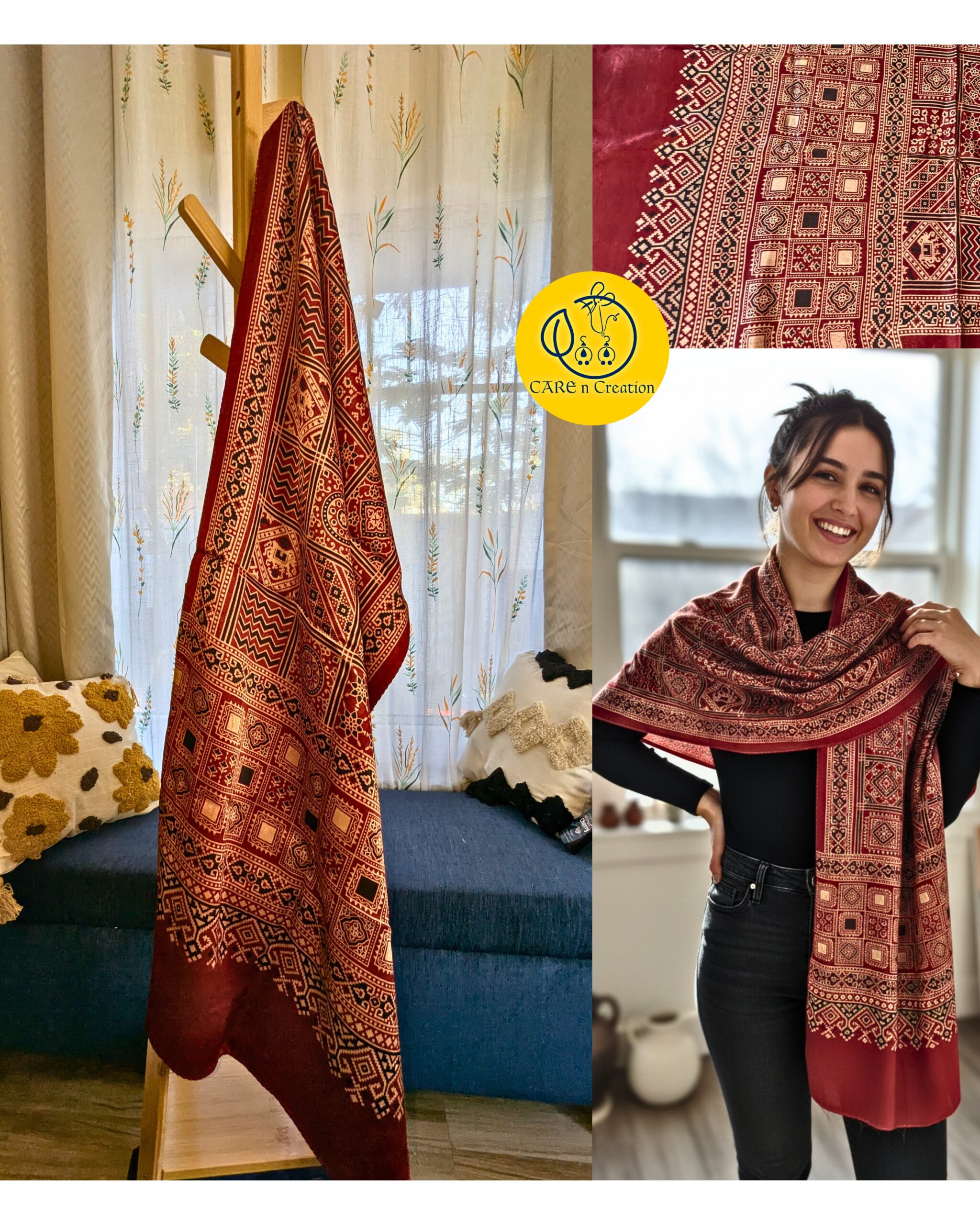 One Ajrakh Modal Silk Stole, endless ways to wear it.
