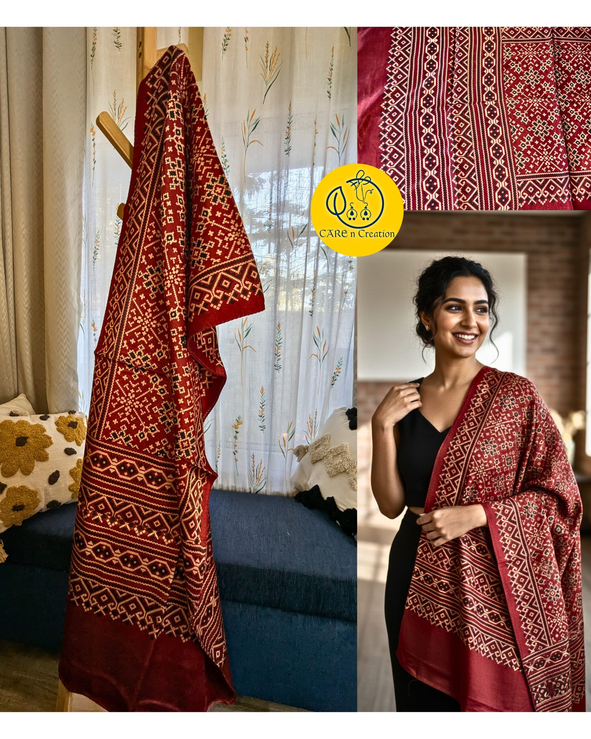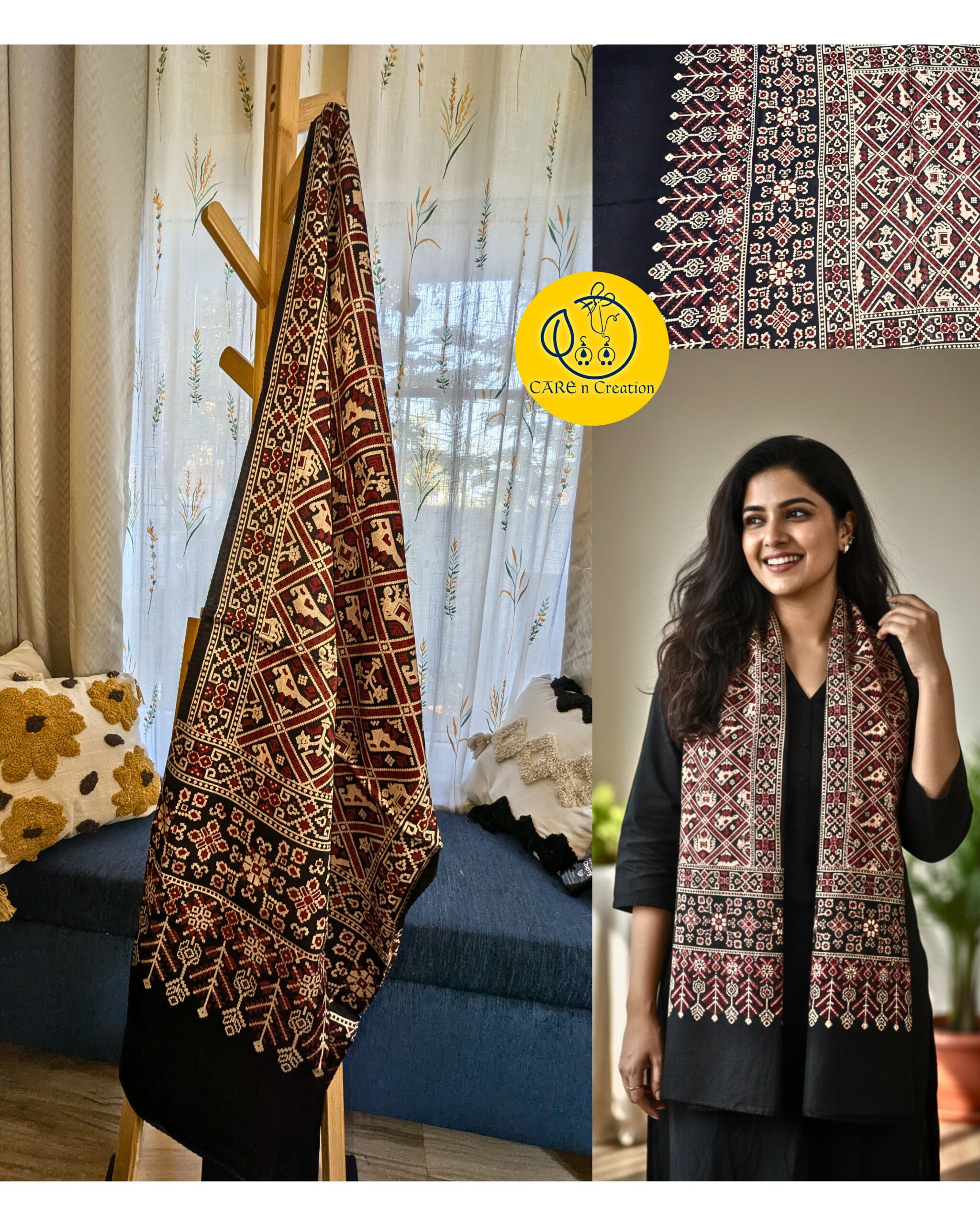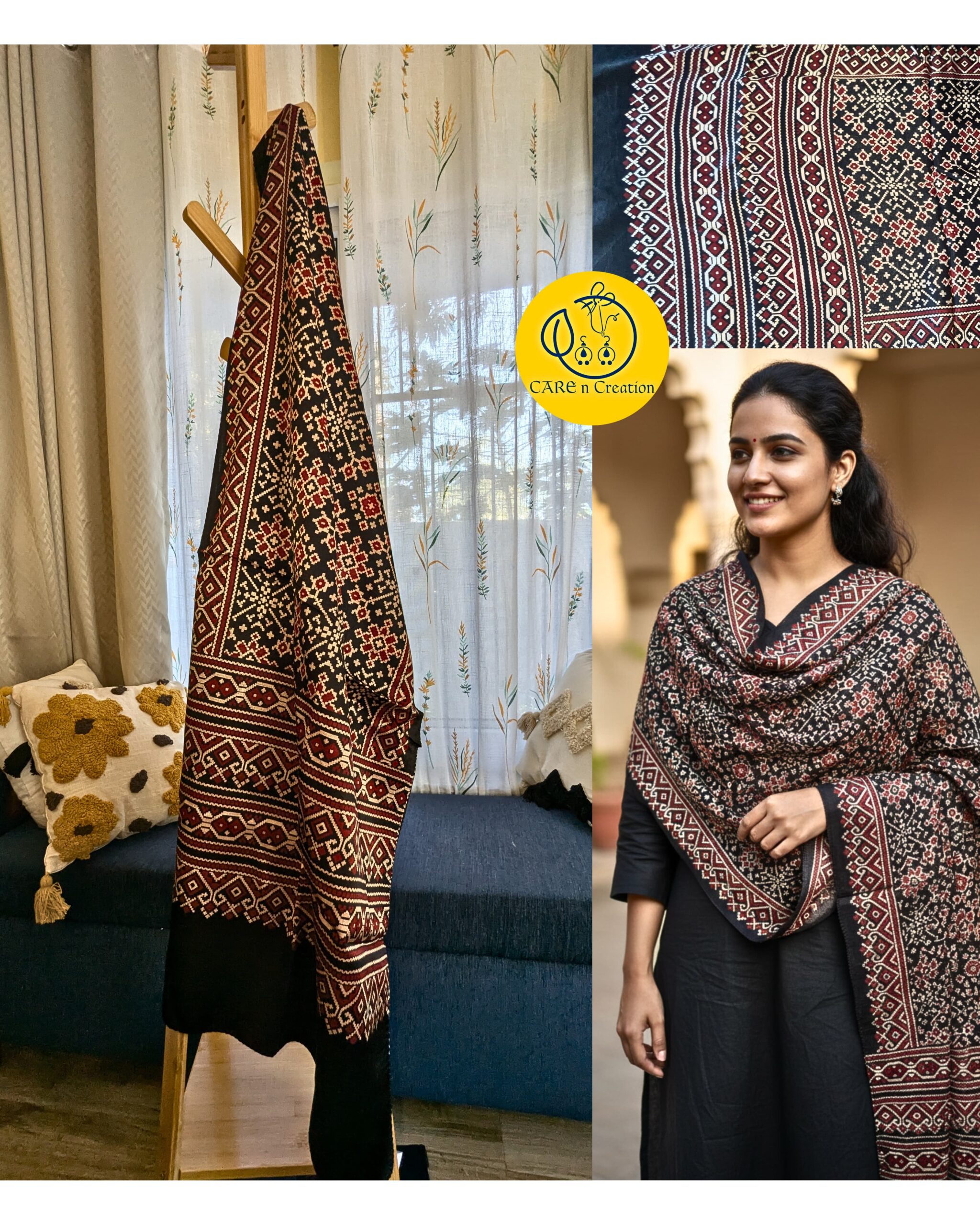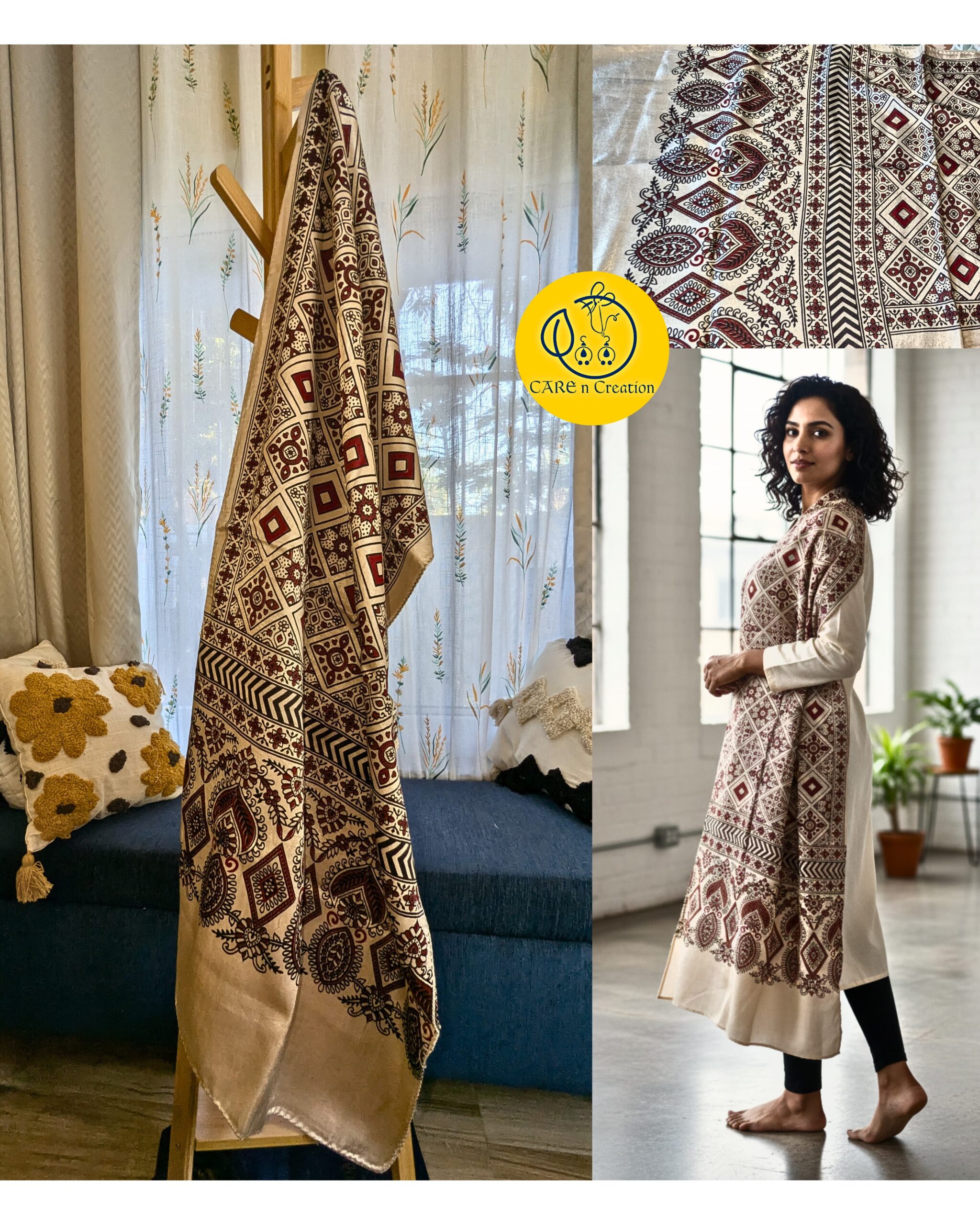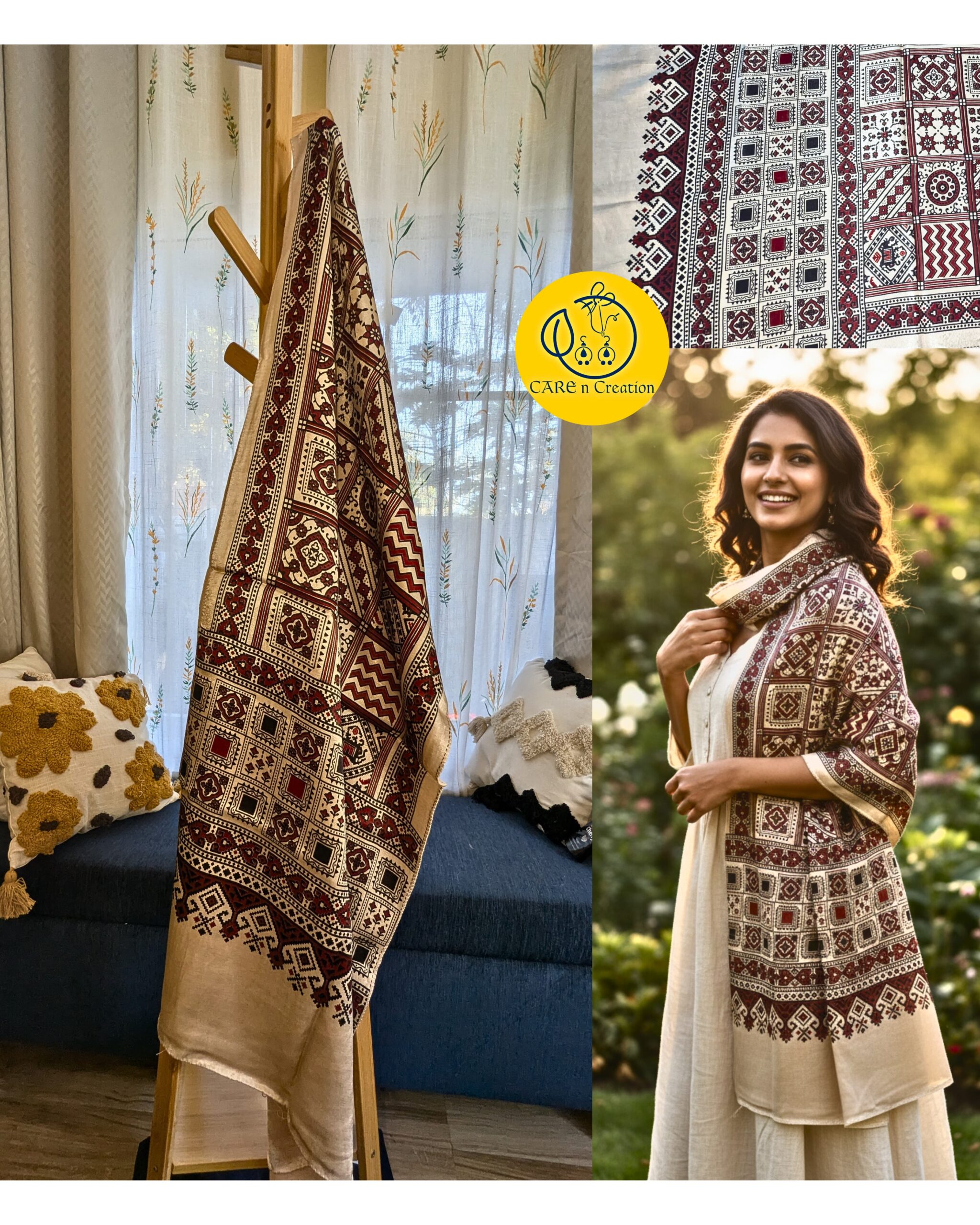 One Ajrakh Modal Silk Stole, endless ways to wear it.